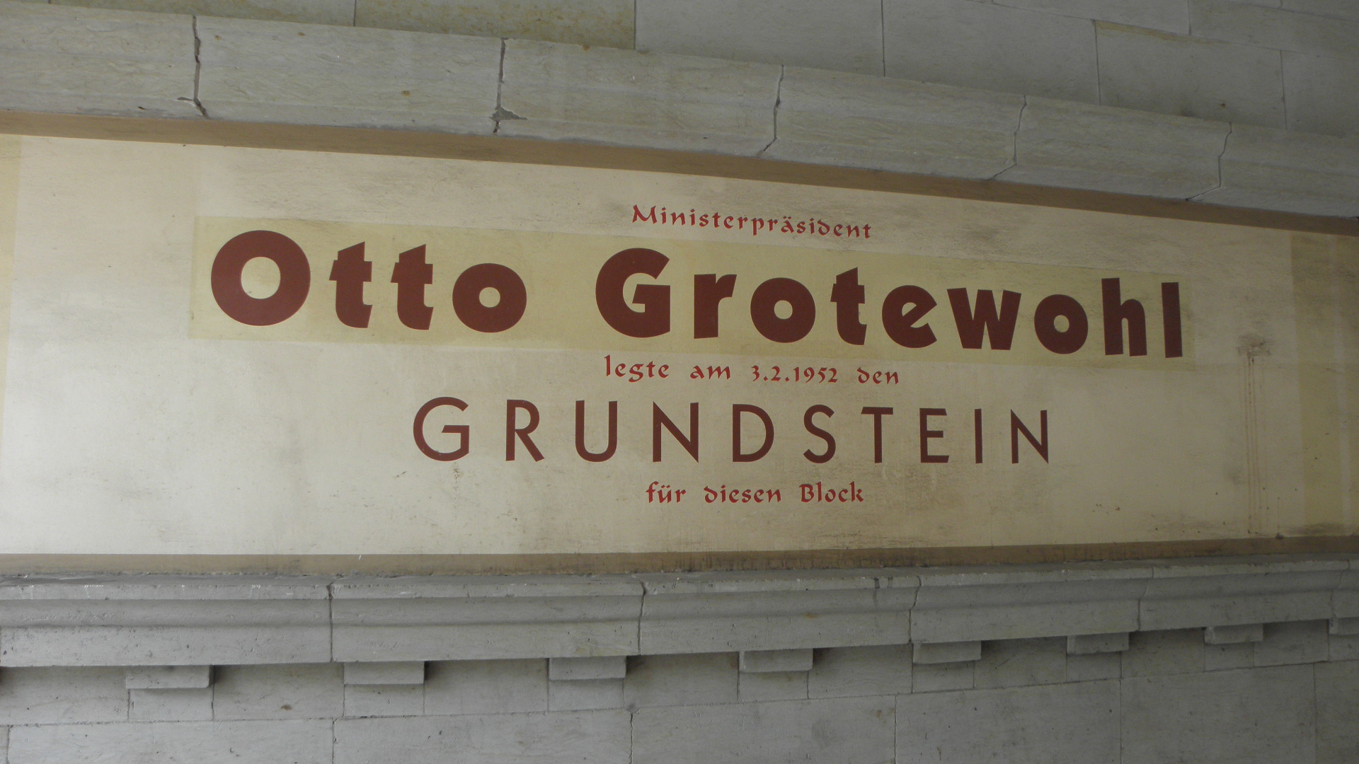 La première pierre. Certains habitants des immeubles se souviennent encore. Photo Elisabeth Cadot/Berlin/Mai 2015