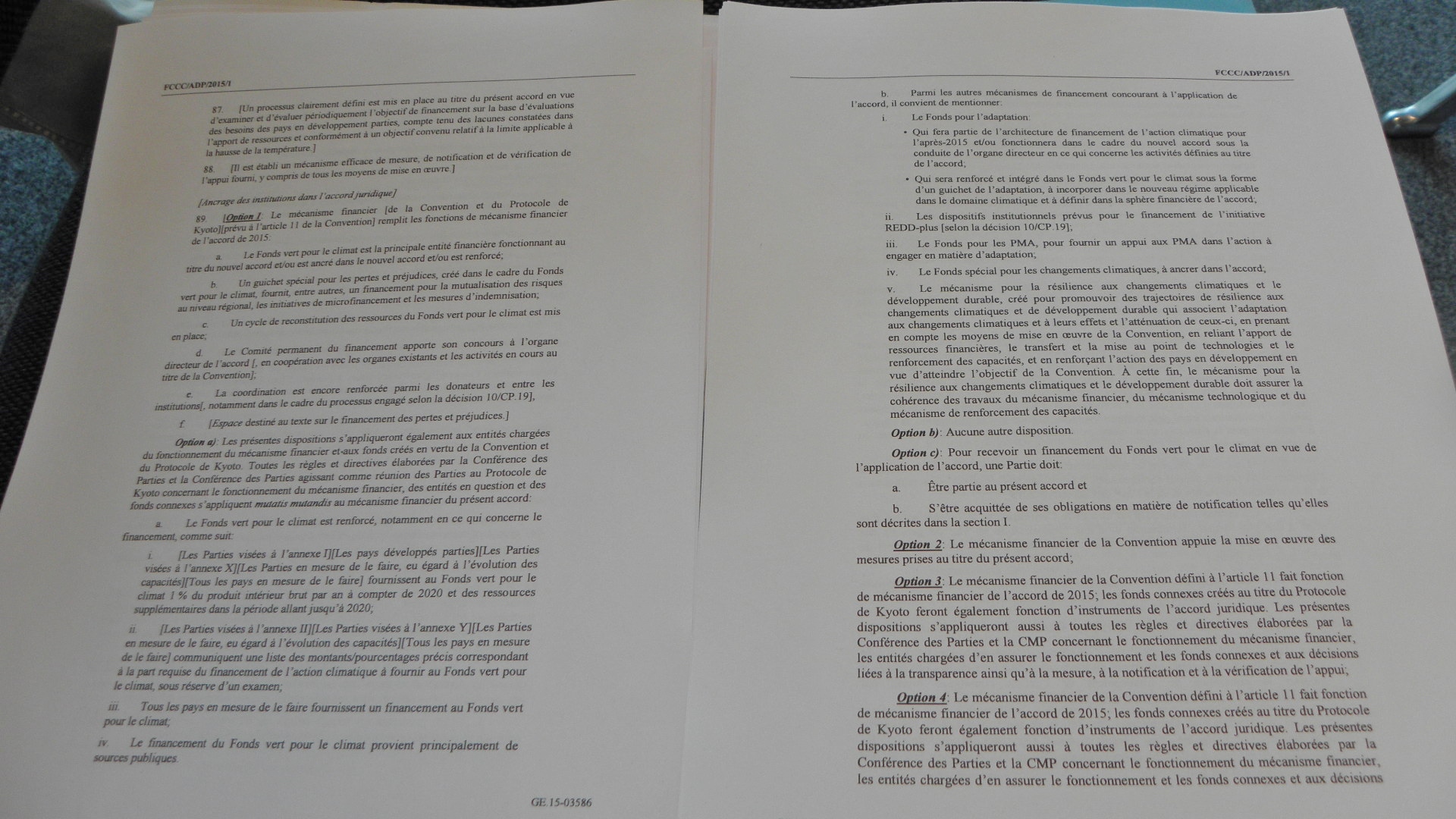 Dans sa version anglaise il est épais de 90 pages, dans sa version française 130. Tout frais sur la table sur Secrétariat de l’ONU pour le changement climatique. Ce document est encore plein de parenthèses, comme nous avons pu le constater. L’objectif est donc de les faire disparaître peu à peu pour arriver à Paris avec un texte aussi consensuel que possible. Prochain round de négociations : à Bonn début juin. Et pour ne fâcher personne précise Alexander Saier, on est passé de la notion de « partage du fardeau au partage des solutions » C’est beau la sémantique…Reste que ça coince un peu quand même : la Chine, plus gros émetteur de gaz à effet de serre (22% des émissions mondiales) n’a pas encore remis sa copie. Même chose pour l’Australie, l’Inde, le Japon et le Brésil. L’Europe (12% des émissions ) fait figure de bon élève en promettant une baisse de 40% des gaz à effet de serre en 2030 par rapport à 1990. La Russie est plutôt le cancre : elle annonce une réduction de 25 à 30% de ses émissions par rapport à 1990, grâce à ses forêts. C’est un peu léger…